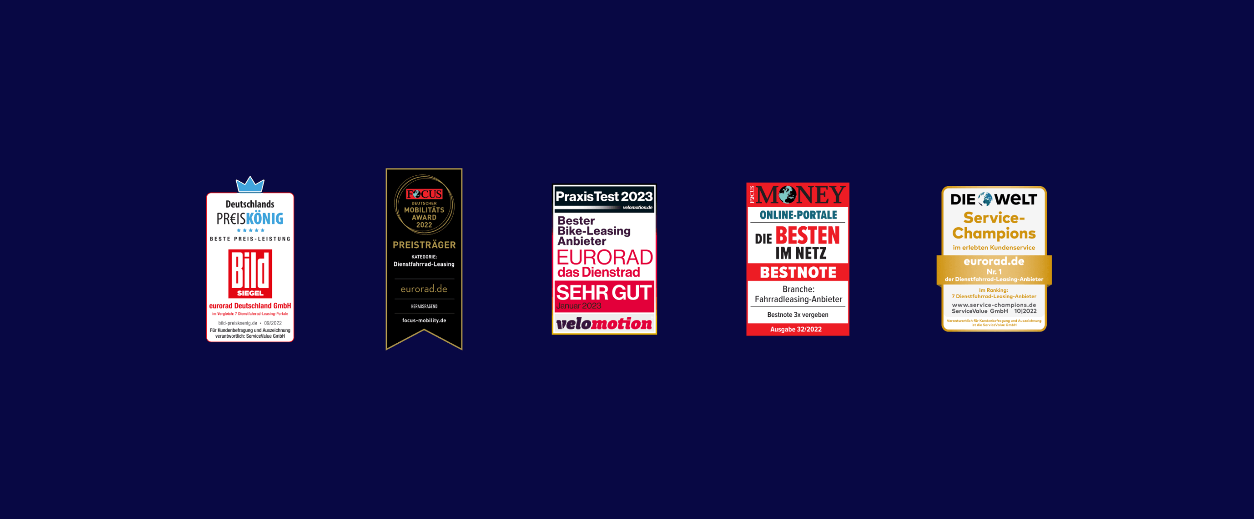 Auszeichnung für eurorad eurorad wurde von verschiedenen Testberichten als bester Bike-Leasing-Anbieter gekürt! Die Tageszeitung DIE WELT, das Magazin FOCUS MONEY mit dem Deutschland-Test und das Fahrrad-Magazin velomotion.de...